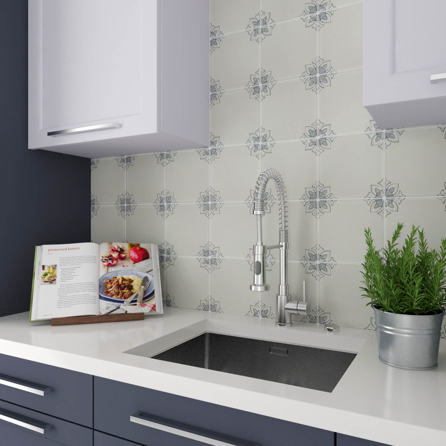 Latin Accents brings the visual impact of hand painting into your kitchen. And by offering porcelain bodies, a tile countertop in over a dozen colors becomes a reality.