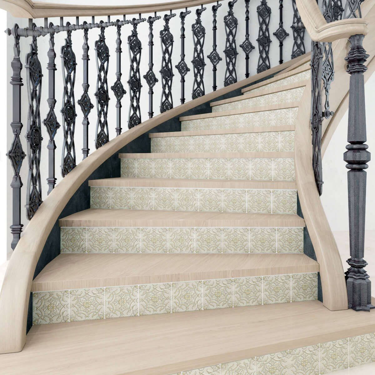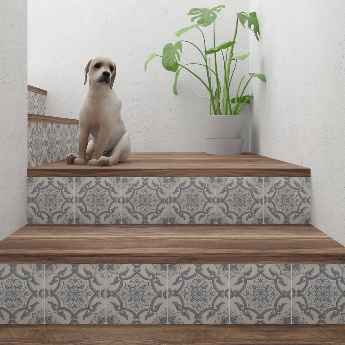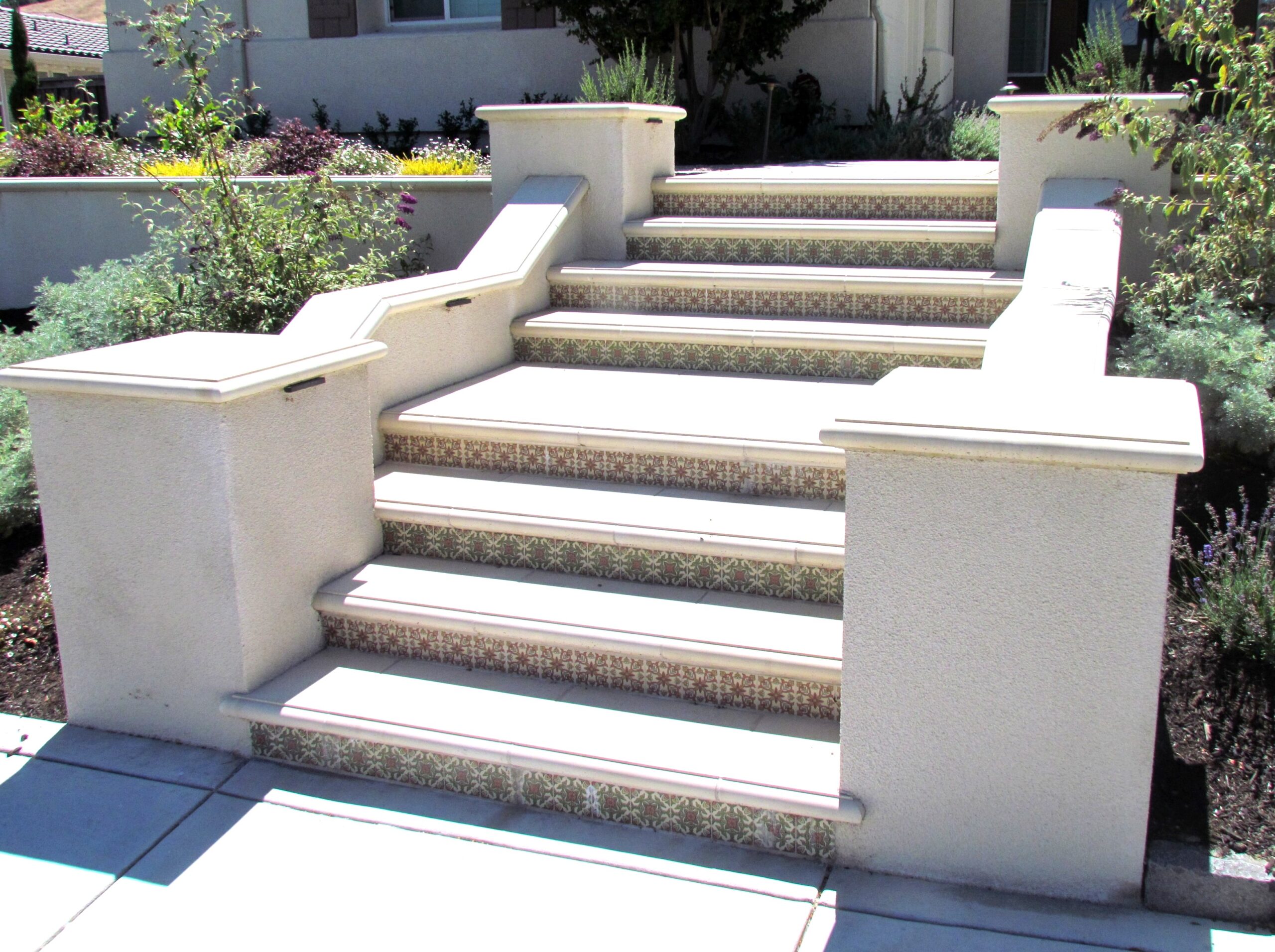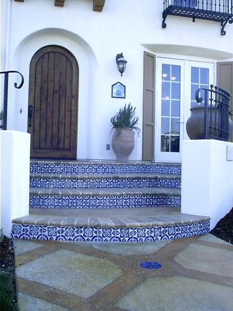 Our porcelain tile bodies allow for all-weather outdoor installations of stair risers. You can have confidence that the abuse of feet hitting decorated tile risers will not have the same impact as with the delicate clay tile bodies of other hand-crafted products.